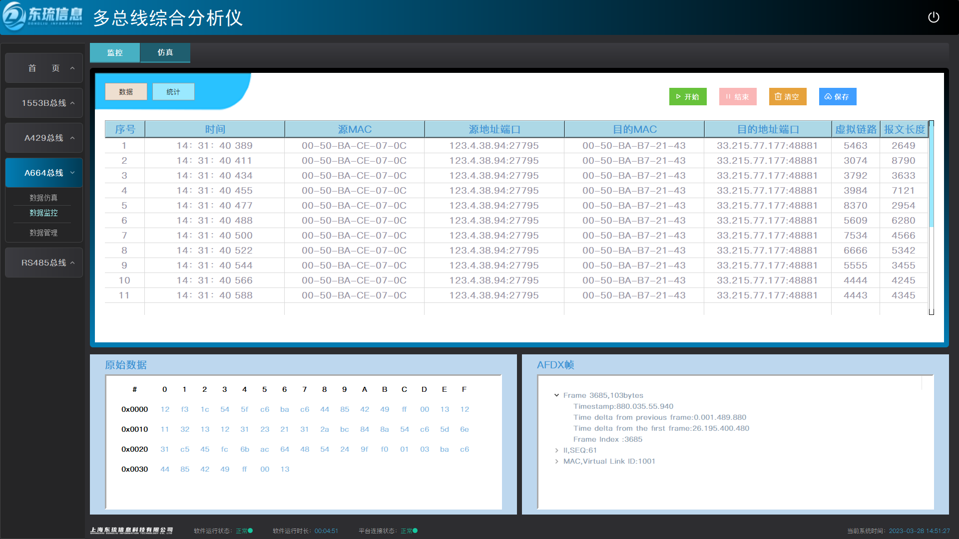 ◆ 具备A664总线数据仿真与监控功能